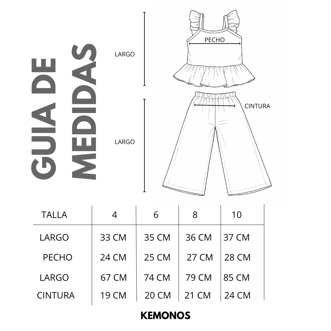 En KEMONOS somos fabricantes mexicanos, comprometidos con la calidad y el diseño en cada prenda. Este modelo está confeccionado en tela cey, suave, fresca y perfecta para climas cálidos, con detalles en glitter que aportan un brillo sutil y divertido, ideal para la temporada primavera-verano.